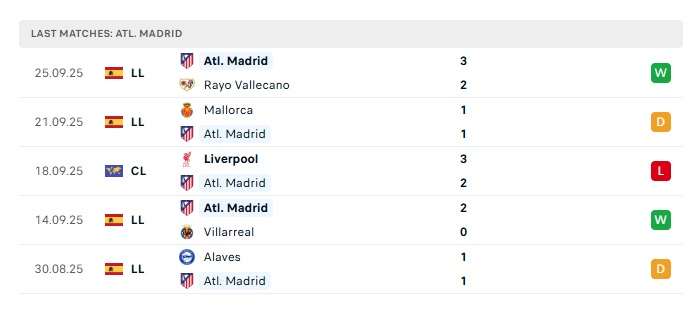 - Phong độ gần đây Atletico Madrid