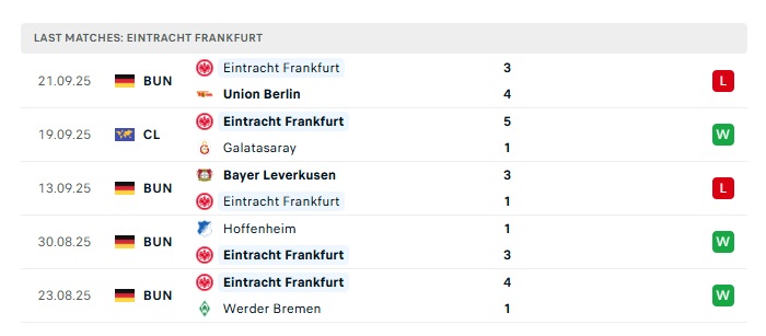 - Phong độ gần đây Ein.Frankfurt