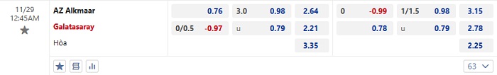 Bảng tỷ lệ kèo bóng đá AZ Alkmaar vs Galatasaray