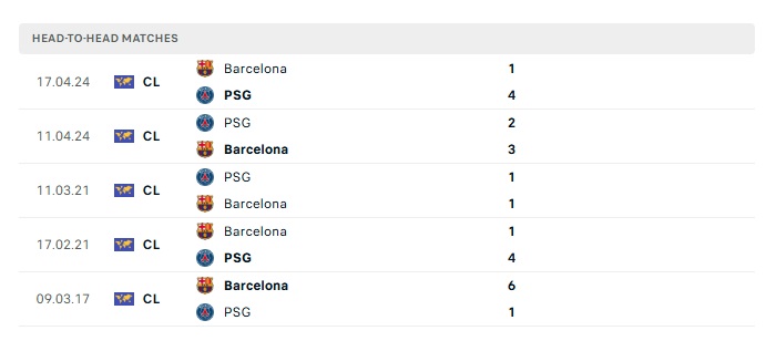 - Kèo tỷ số H2 Barcelona vs PSG: 1-0