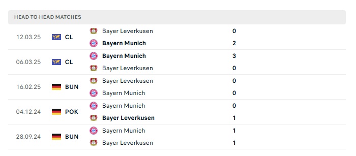 Phong độ gần đây Bayern Munich vs Bayer Leverkusen