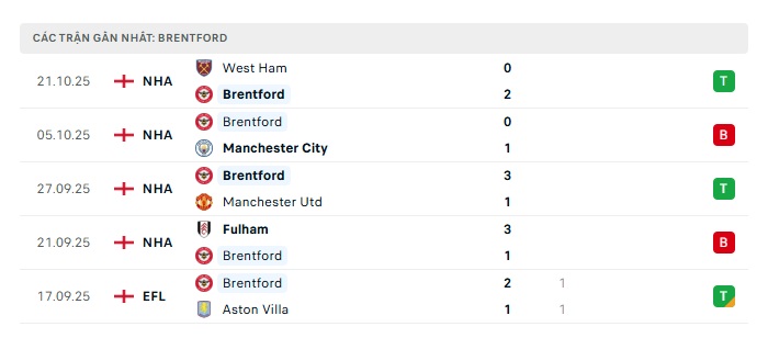 - Phong độ gần đây Brentford