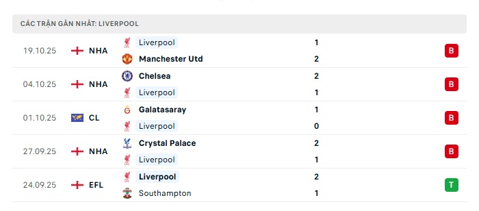 - Phong độ gần đây Liverpool
