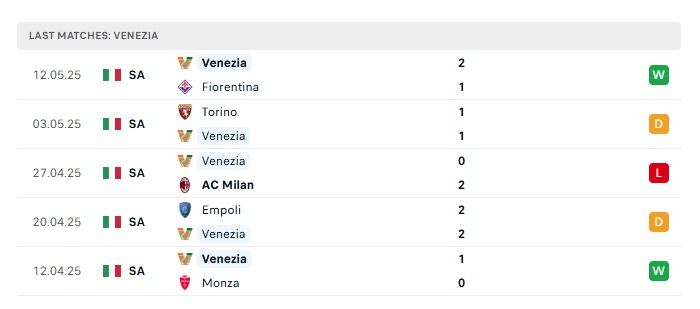 - Phong độ gần đây Venezia