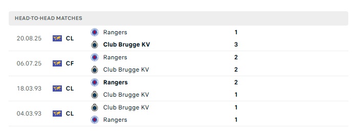 - Kèo tỷ số H2 Club Brugge vs Rangers: 1-0