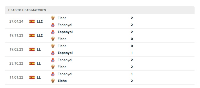 - Kèo tỷ số H2 Espanyol vs Elche: 2-1