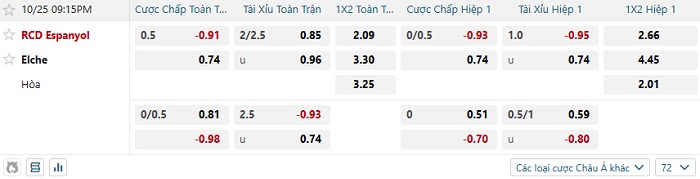 Soi kèo châu Á, kèo Espanyol vs Elche