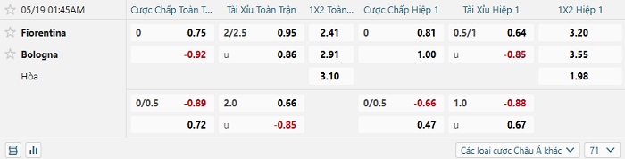 Soi kèo châu Á, kèo Fiorentina vs Bologna