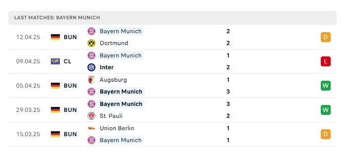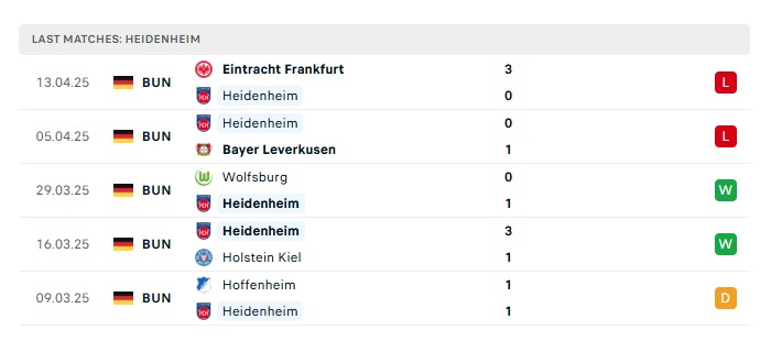 Phong độ gần đây Heidenheim vs Bayern Munich