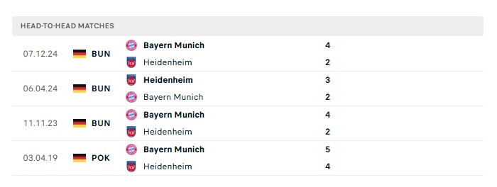 Lịch sử đối đầu Heidenheim vs Bayern Munich