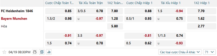 Soi kèo châu Á, kèo Heidenheim vs Bayern Munich