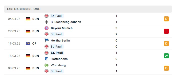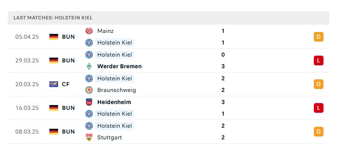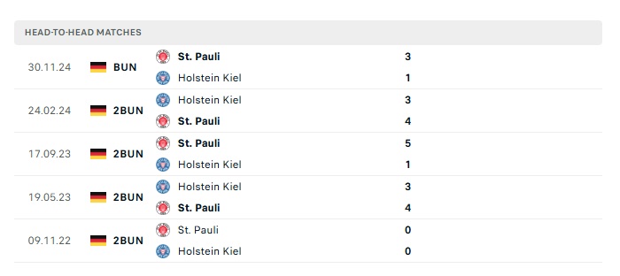 Phong độ gần đây Holstein Kiel vs St. Pauli