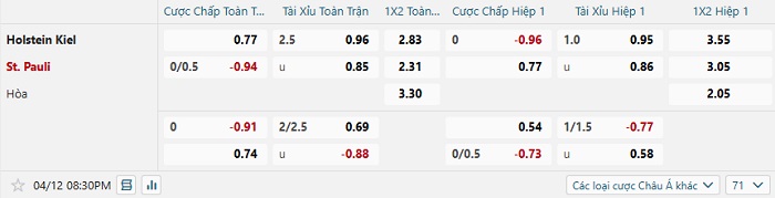 Soi kèo châu Á, kèo Holstein Kiel vs St. Pauli