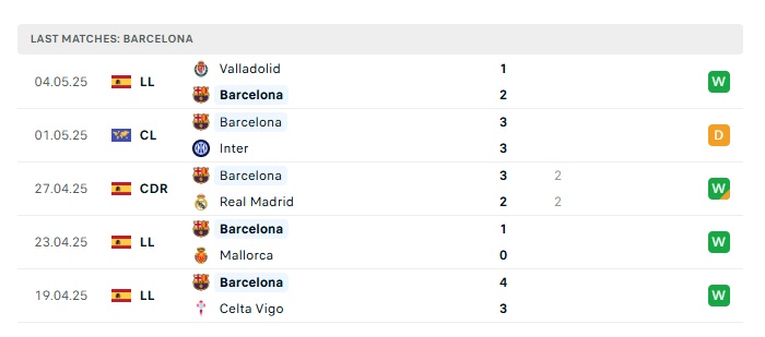 Nên nhớ rằng với Barcelona, họ đang phải tập trung cho cuộc đua ở cả La Liga và C1. Trong khi đó, Inter chấp nhận thua Napoli trong cuộc đua Serie A vì mùa trước họ đã vô địch và tập trung toàn lực vào đấu trường châu Âu. Nên biết rằng trong 6 trận đấu gần nhất, Inter chỉ thắng 1, hòa 2 và thua 3. Trong khi đó thì Barcelona buộc phải thắng 4, hòa 1 trong 5 trận gần nhất khi mà Real Madrid chỉ còn cách đội bóng này đúng 4 điểm trên BXH.