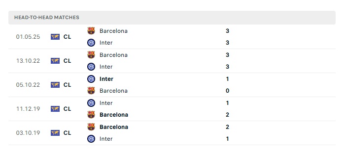 Với những gì được ghi nhận, khả năng Inter có được cho mình 1 chiến thắng trong trận đấu hôm nay đang cực cao. Bởi cần phải biết rằng, Barcelona có lối chơi tấn công mạnh mẽ từ Hansi và điều này khiến đội bóng có hàng thủ dâng cao, mỏng manh. Lần gần nhất Inter đón tiếp Barcelona tại C1 vào năm 2022, đại diện Serie A cũng đã thắng 1-0. Do đó, kèo châu Âu trận đấu hôm nay sẽ khép lại với đội chủ nhà là lựa chọn tốt nhất.