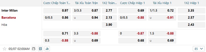 Bảng tỷ lệ kèo bóng đá Inter Milan vs Barcelona