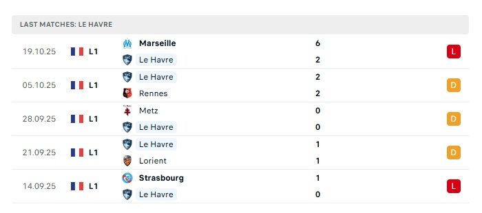 Phong độ gần đây Le Havre vs Stade Brestois