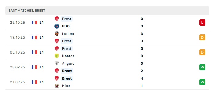 - Phong độ gần đây Stade Brestois