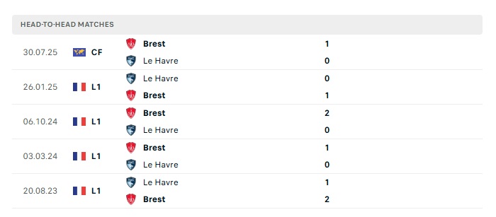Lịch sử đối đầu Le Havre vs Stade Brestois