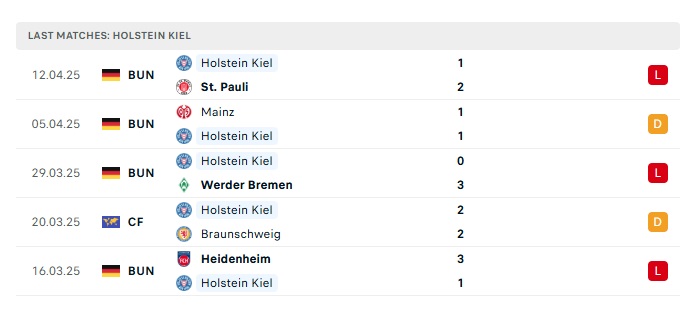 - Phong độ gần đây Holstein Kiel