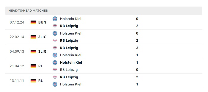 Lịch sử đối đầu Leipzig vs Holstein Kiel