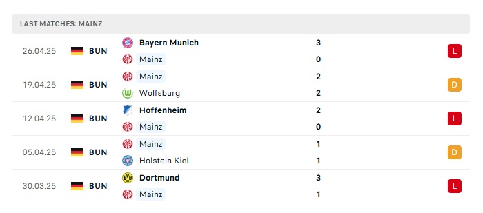 - Phong độ gần đây Mainz