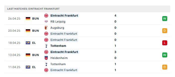 - Phong độ gần đây Ein.Frankfurt