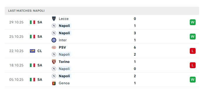 - Phong độ gần đây Napoli