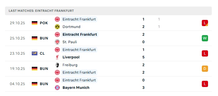 - Phong độ gần đây Ein.Frankfurt