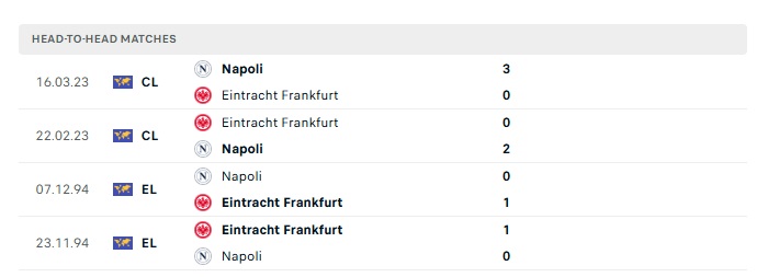 Lịch sử đối đầu Napoli vs Ein.Frankfurt