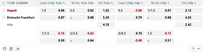 Soi kèo châu Á, kèo Napoli vs Ein.Frankfurt