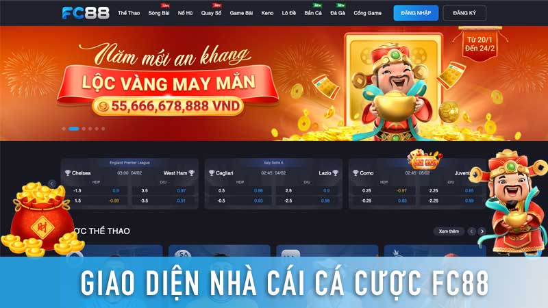 • Phần đầu giao diện: Chính là những tính năng đăng ký và đăng nhập cùng với đó là một menu danh sách sản phẩm đang được FC88 cung cấp hiệp nay.