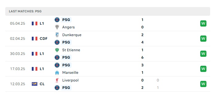 - Phong độ gần đây PSG