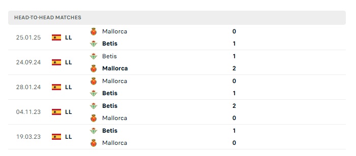 - Kèo tỷ số H2 Real Betis vs Mallorca: 3-1