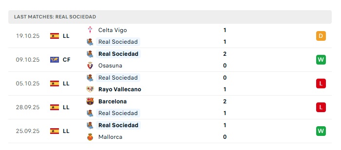 - Phong độ gần đây Real Sociedad