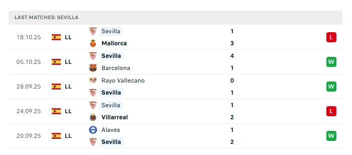 - Phong độ gần đây Sevilla