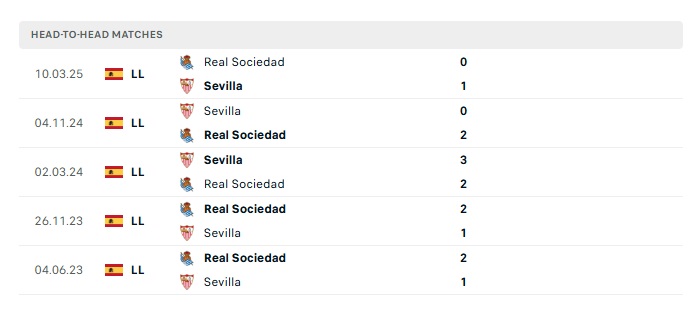 Lịch sử đối đầu Real Sociedad vs Sevilla
