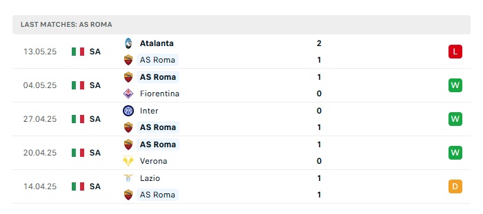 - Phong độ gần đây Roma