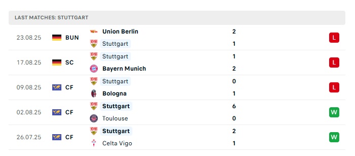 Phong độ gần đây Stuttgart vs Monchengladbach