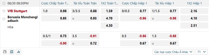 Bảng kèo bóng đá Stuttgart vs Monchengladbach