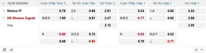 - Dự đoán tỷ số hiệp 1: Malmo 0 – 0 Dinamo Zagreb