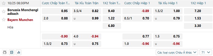 Tip kèo Châu Á hiệp 1 Monchengladbach vs Bayern Munich