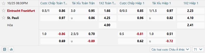 Tip kèo tỷ số Frankfurt vs St. Pauli