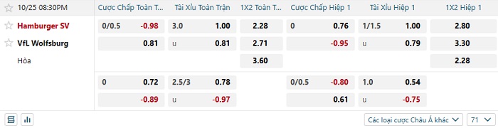 Tip kèo Châu Á full trận Hamburger vs Wolfsburg