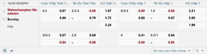 Tip kèo Châu Á full trận Wolves vs Burnley