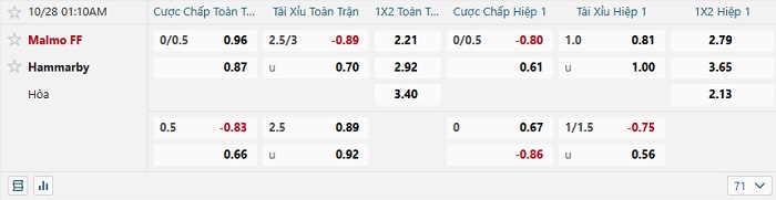 Tip kèo Châu Á hiệp 1 Malmo vs Hammarby