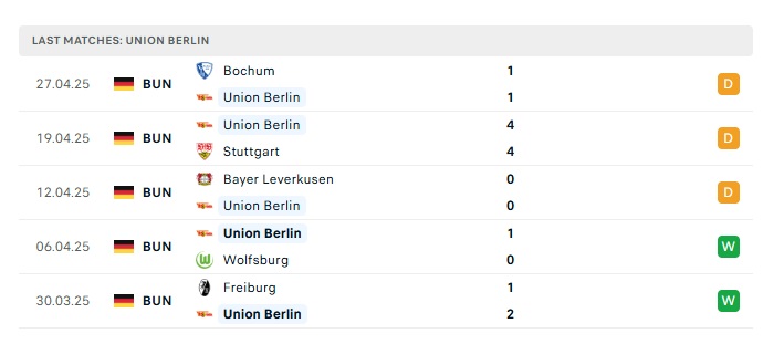 - Phong độ gần đây Union Berlin