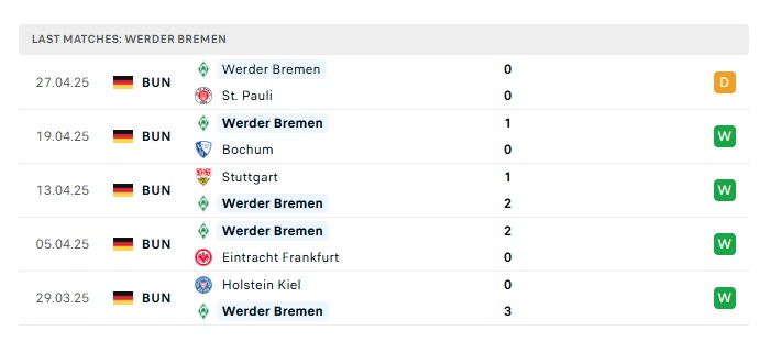 - Phong độ gần đây Werder Bremen