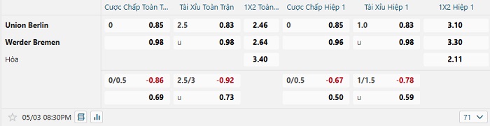 Bảng kèo bóng đá Union Berlin vs Werder Bremen